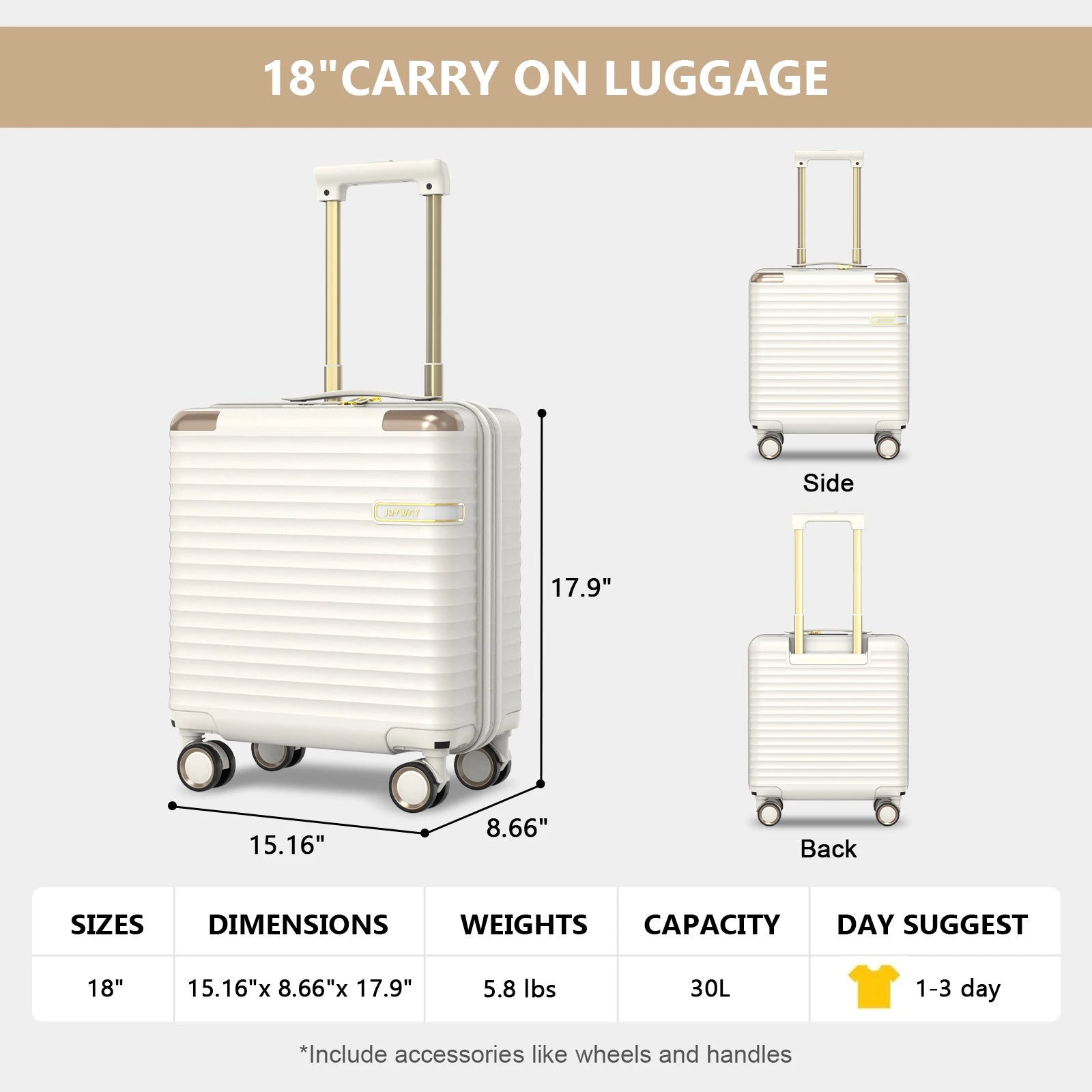 This 18-inch carry-on luggage (15.16"x8.66"x17.9") is perfect for short trips. It includes a TSA lock for secure travel and spinner wheels for easy maneuvering. The lightweight design ensures comfort during flights. Ideal for quick getaways, it fits seamlessly into any travel plan.